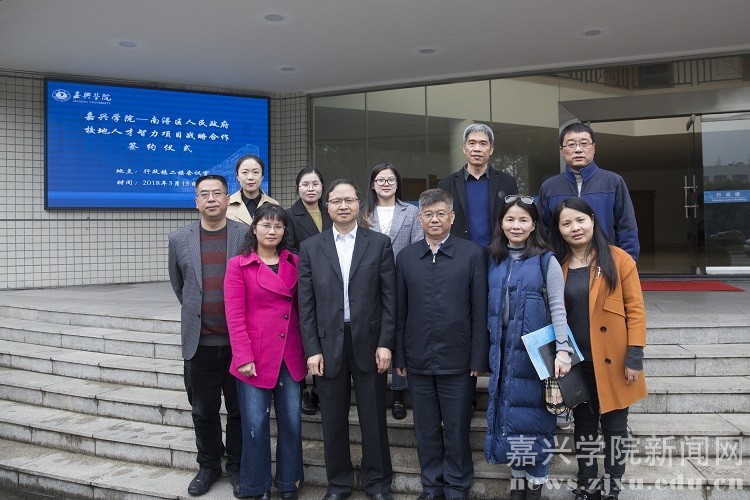 3月15日上午,我校与湖州市南浔区人民政府在行政楼第二会议室签署校地人才智力项目战略合作协议,并为“浙江省湖州市南浔区驻嘉兴人才工作站”揭牌 。